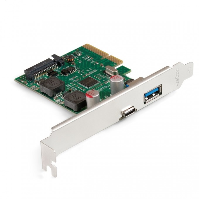 Контроллер ExeGate EXE-313-1A1C (PCI-E x4 v3.0, USB3.2 Gen2 1xType-A + 1xType-C ext., SuperSpeed+ скорость до 10 Гбит/с, разъем доп.питания, ASMedia Chipset ASM3142) <EX298303RUS>
